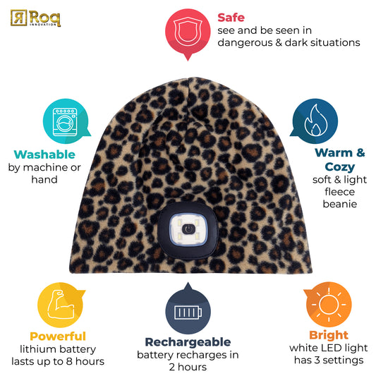 Headlightz® Beanie - Fleece - Leopard